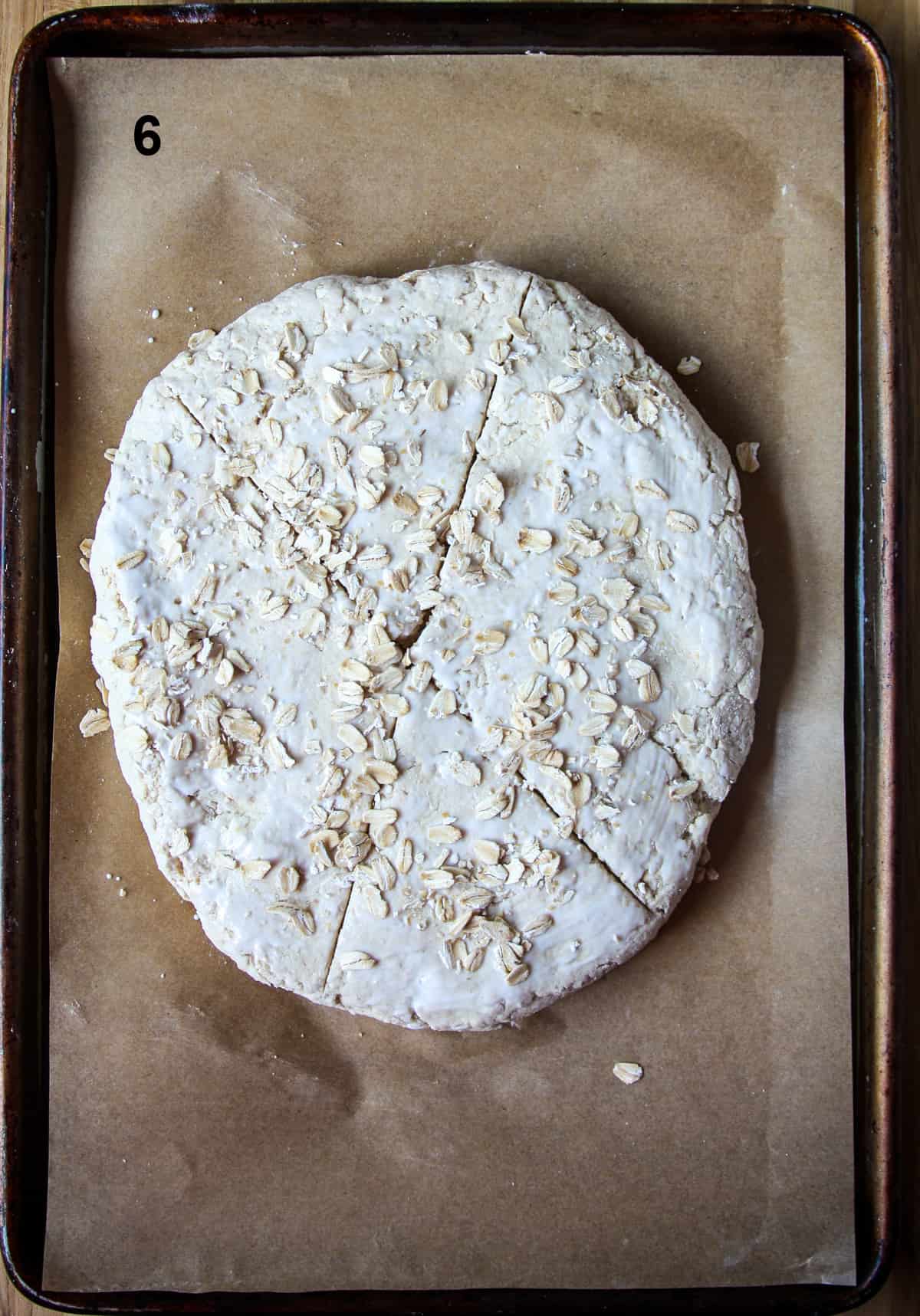 - With a sharp knife, score a large, shallow X across the top of the dough.