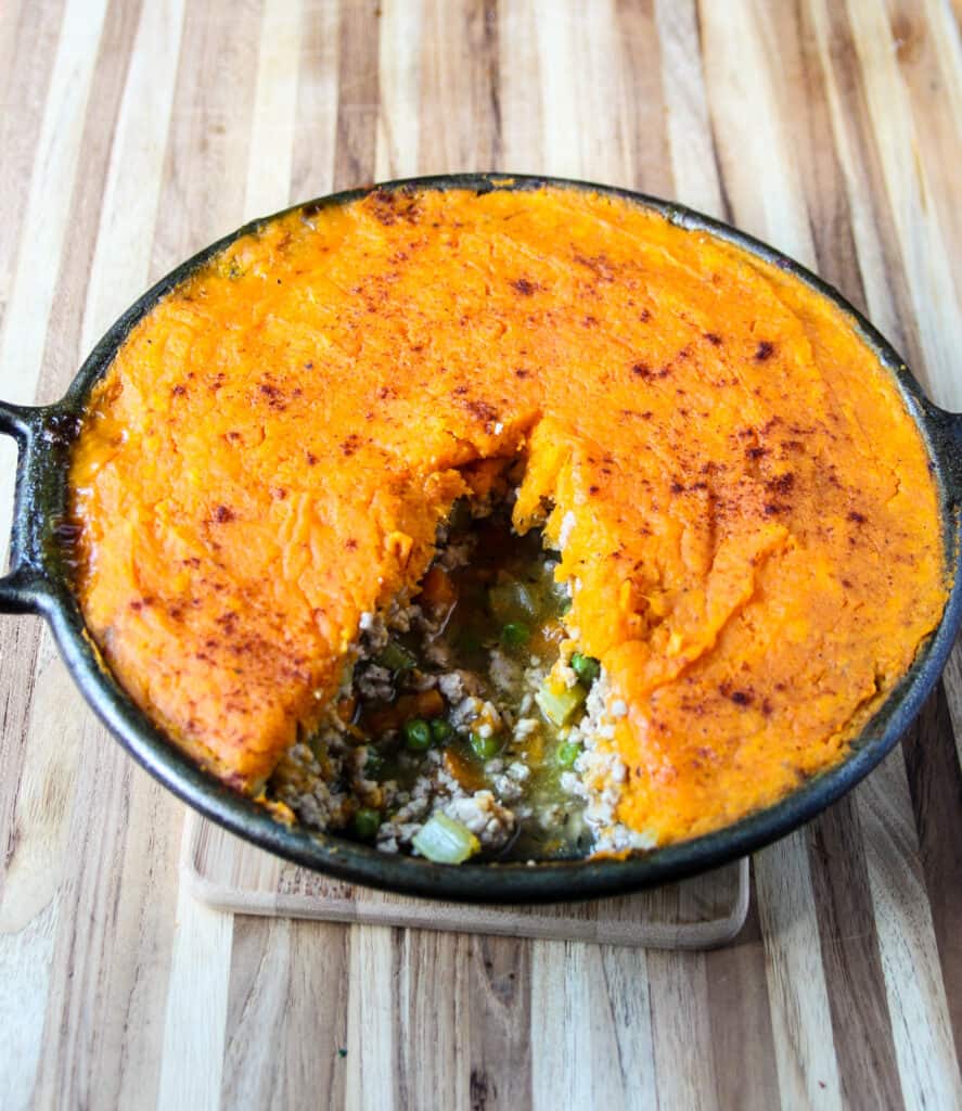 - Change the topping. Regular potatoes, mashed rutabaga, cauliflower mash, or even Parsnip Puree all are delicious substitutions for the sweet potato topping.