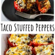 We love this recipe. These taco stuffed peppers are delicious, easy to make and nutritious. You can't go wrong!