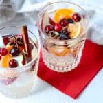 We usually think of sangria as a summer drink, but this winter white sangria is a perfect cold-weather wine cocktail for entertaining during the holidays. Packed full of delicious winter fruits -- oranges, cranberries, apples, and pears -- this holiday white wine sangria also showcases the warm, comforting winter spices of ginger, cinnamon, and star anise. Whether you enjoy simple, intimate gatherings or larger holiday events, this white wine sangria recipe will become your new favorite festive cocktail.
